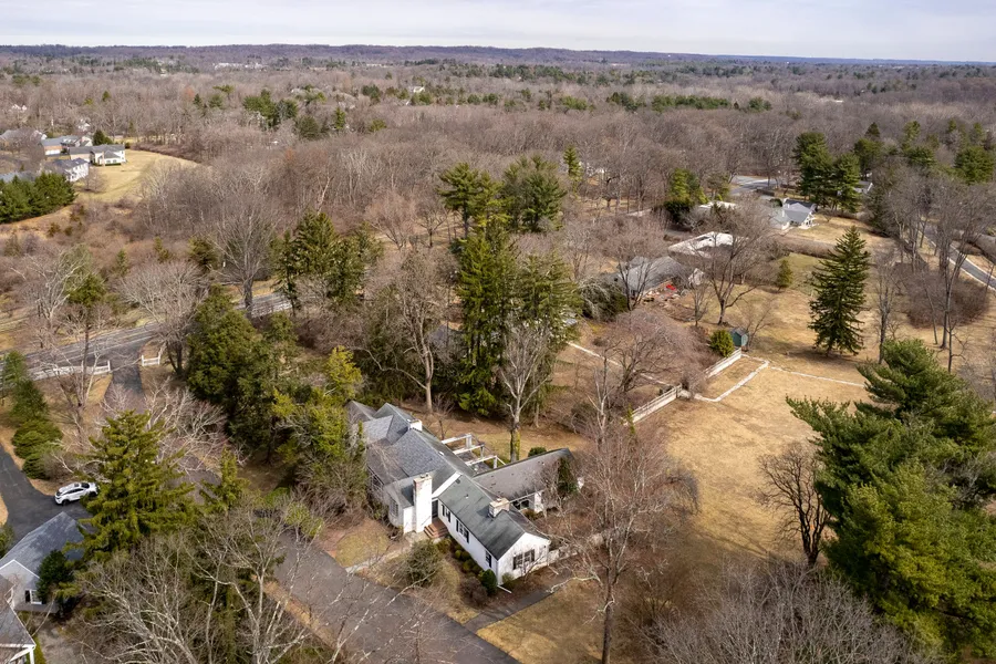 This sun-soaked 1950s expansive six-bedroom one-level home welcomes with a serious side of charm, pedigree, and potential. Designed by Princeton-trained architect Francis A. Comstock, one of the very first students to graduate from Princeton’s newly formed School of Architecture in 1919, and lovingly maintained by its one and only owner, this home sits on 1.22 lush acres wrapped in English-style walled gardens and anchored by a bluestone patio made for alfresco everything. Nearly every common room opens to the outdoors, inviting light to dance across hardwood floors. The layout is equal parts practical and poetic: a tucked-away primary suite with its own dressing area and en suite, a wing of ancillary bedrooms with two more bathrooms, and a library adjoined by a bedroom and bath that moonlights beautifully as a guest suite. Rooms are impressively large and offer so much flexibility with ...