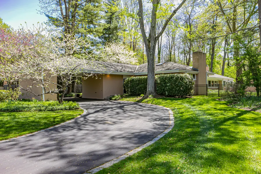 In Princeton’s prized Western section, this impeccably maintained Mid-century Modern home is a striking example of single-level living at its most refined. Designed by noted Princeton architect Thaddeus Longstreth, who once collaborated with modernist legend Richard Neutra on the iconic Kaufmann House, this home embodies the timeless principles of organic architecture. Walls of glass and thoughtfully placed sliding doors dissolve the boundary between indoors and out, drawing light and landscape into every corner. Set on lush, leafy grounds, the home’s design feels deeply rooted in its surroundings. The renovated kitchen is both sleek and practical, anchored by a full suite of Gaggenau appliances. A radiant sunroom, living room, and family room each offer their own sense of sanctuary, complete with cozy fireplaces. Four bedrooms are tucked into a private wing, including a serene main suite with a walk-in closet and spa-like bath. A large home office, perfectly placed near a powder room, completes the effortlessly functional layout. A curved driveway introduces a porte cochère with generous storage for bikes, garden tools, and weekend gear, while the patio just beyond the sliders is ideal for quiet mornings or evening gatherings. Elegant yet understated, this is an architectural gem in one of Princeton’s most beloved neighborhoods.
