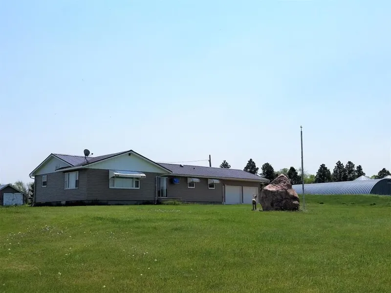 Private country living minutes from Lake Sakakawea's Beaver Bay Recreation Area. Surrounded by mature trees this 15+/- acre homesite offers 3,168 SF of finished living space. Well constructed 5 bdrm, 3 bath ranch style home with 2 stall attached garage, steel siding, and metal roof. Enjoy TWO full kitchens (one on each level), main floor laundry, and 3 main floor bedrooms. Dining area with patio doors plus large living room area which provides a great view of the farm. Basement includes an office, 2 nonconforming bedrooms, 1/2 bath, and a LARGE family/game room. Tons of storage throughout. This small farm also offers TWO large QUONSETS (5,100 sf & 3,724 sf), a WORKSHOP, and a functional 3,200 sf BARN with tack/milking room. Additional outbuildings and grain bins are included. Private well and updated septic system. If you are looking for country living near the lake, shop space for work/...
