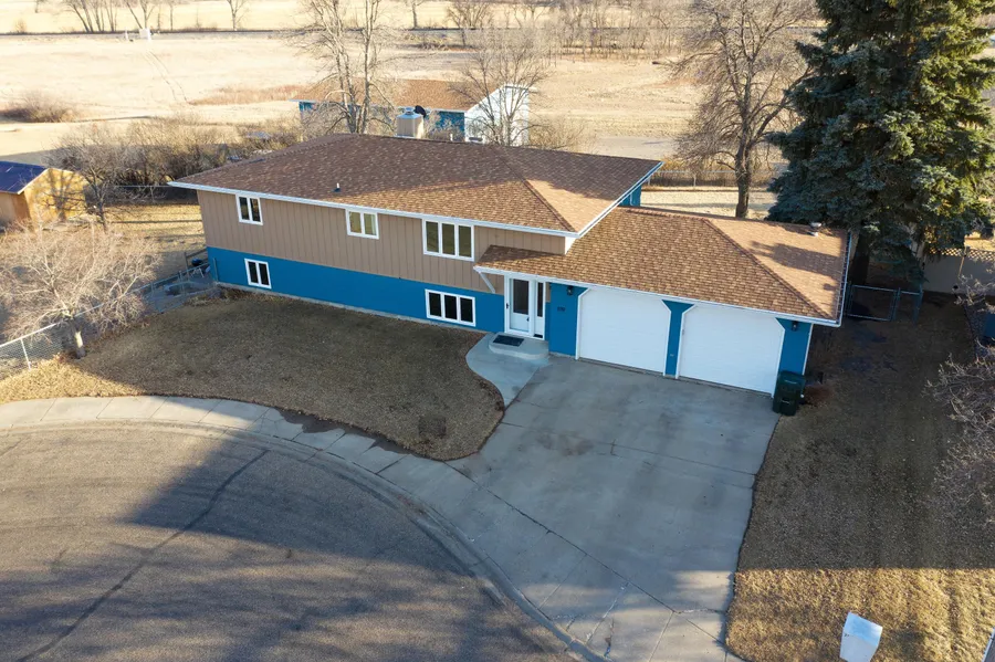 Privacy and space are awaiting you in this very well cared for home in east Hazen. This .41 acre property is situated on a quiet cul de sac with home features that include NEW Leingang triple pane windows and doors, new concrete patio, and a recently fully fenced backyard. Updated and very spacious kitchen with HD counters, new appliances, amazing pantry, and peninsula with adjoining dining room which easily accommodates large gatherings. South facing living room with original hardwood floors, a built in hutch, and adjoining formal dining area with access to maintenance free back deck. Very spacious master bedroom, 3 additional bedrooms, a full bath up with laundry chute, plus a 3/4 bath down. Lower level family room (new carpet) is large enough for an office space plus features a ''real'' wood burning fireplace. Desirable walkout basement leads you to secluded patio area, fully fenced & established garden area, along with mature trees. Significant savings on heating and cooling costs offered by the GeoThermal system installed in the home! Tons of storage throughout, insulated and heated 2 stall attached garage, and so much more. This is a fantastic home you will definitely want to put on your home tour checklist!