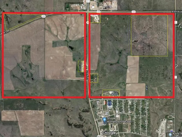 **RARE OPPORTUNITY**EXTENSIVE land offering consisting of 1,019+/- acres within the heart of coal country now on the market for the first time. This property has unprecedented income potential and offers PRIME COMMERCIAL and RESIDENTIAL development possibilities. IDEAL LOCATION right outside Beulah city limits, expansive HWY 200 & HWY 49 FRONTAGE, and near proximity to Lake Sakakawea. There is a mix of highly productive cropland (448+/- acres) and 571+/- acres of native pasture. Scenic rolling hills, several water sources which include SW water, a well, and stock dams, plus electricity available. Sizeable acreages of this nature seldom become available and may not change hands for another lifetime. An excellent piece of real estate to add your existing operation or a blank canvas for your vision to take shape. Pasture and cropland currently leased for the 2018 planting season. Weighted Average Sec.13=81.6 & Sec.14=61.9 (soil data per USDA/NRCS) Call today for full details.