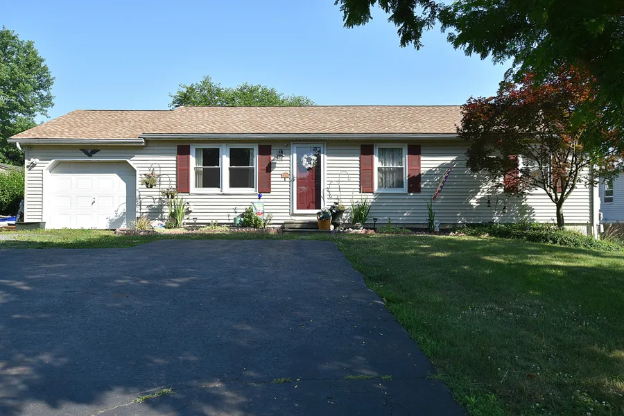 Back on the market due to Buyer's change of circumstances. Lovely well maintained ranch on the edge of town. Kitchen offers a nice amount of wood cabinets,double stainless sink, smooth top range, refrigerator and dishwasher. The breakfast room w/sliders leads to the private covered screened deck, perfect for summer dining and relaxing with views of the fenced big back yard.Living room, three bedrooms and full bath complete the main floor. Finished walkout basement with family room, full bath, laundry room and 4th Bedroom/workout/playroom. All new energy efficient tilt replacement windows throughout. Walk to the park, ball fields, movie theatre, shopping and dining. Great home and convenient location. Quick settlement possible if needed.