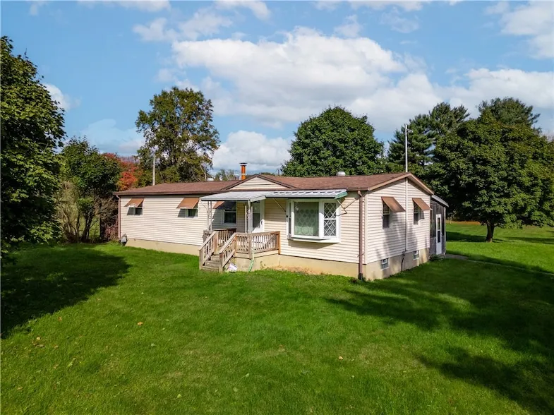 This unique property offers outstanding flexibility with a detached garage that includes a roomy 2-bedroom apartment with a private entrance and a brand-new roof ideal for guests, a home office, or rental income. The garage also provides ample space for vehicles, storage, and a workshop. Just steps away, the charming 3-bedroom manufactured home features a screened-in porch, spacious living room, retro kitchen and bedrooms with built-in storage. A full basement adds even more storage space plus a game room area perfect for rainy day fun. Set on nearly 2 peaceful acres, the property is bordered by a scenic creek, creating a beautiful natural setting to relax and enjoy the outdoors. Whether you're looking for multi-generational living, investment potential, or room to spread out, this property offers it all. Located just minutes from modern conveniences in the nearby borough of Mercer, known for its historic charm and welcoming community. A rare find with room to live, work, and play!