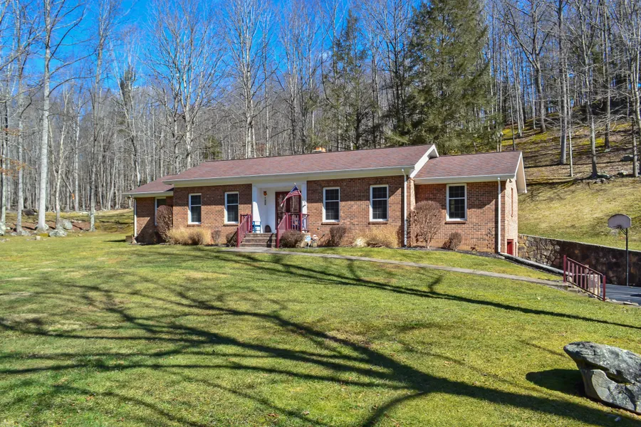 Enjoy a panoramic natural view from your own 24 acres surrounded by towering trees & a bubbling brook. This solid brick ranch offers 3 beds on the main - including master suite, a sun splashed designer kitchen, newly renovated bathes, possible 4th bd/office, HW floors & fresh paint. Add in 2 fireplaces, both public & well water, finished basement, open rooms, endless storage space & French doors leading to the "rocking chair charmer" of a rear deck. There's not much more to desire in a home.