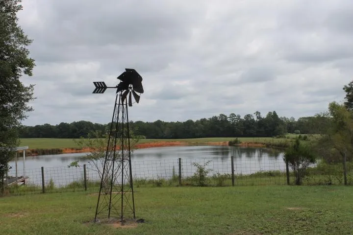 The low maintenance home on the property is a metal structure. This home was designed to be low maintenance and low energy cost. The rooms are very large and has 3 bedrooms and 3 bathrooms. The house has a 2 bay shop attached to it. One bay is large enough to pull most farm tractors into. The home has 2 master bedrooms, a large kitchen, and a huge enclosed back porch. The carport is large enough to park 8 cars under or have a family cookout. The home overlooks both lakes. This home has a nice large yard with fruit trees surrounding it. This property is gated and located down a secluded county maintained road.