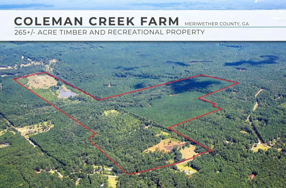 Macallan Real Estate is pleased to present the Coleman Creek Farm in Meriwether County. Less than an hour southwest of Atlanta and 30 minutes south of Newnan, this 265-Acre property is an excellent opportunity to create your personal recreational retreat. The rolling topography features several food plots and over 20 acres of potential pastureland. A mix of upland pines and hardwood bottoms gives the property great potential for future forest management revenues. There are two man-made ponds on the property, one of which is stocked, and ready to fish. With proper management, this tract has great recreational and investment potential.