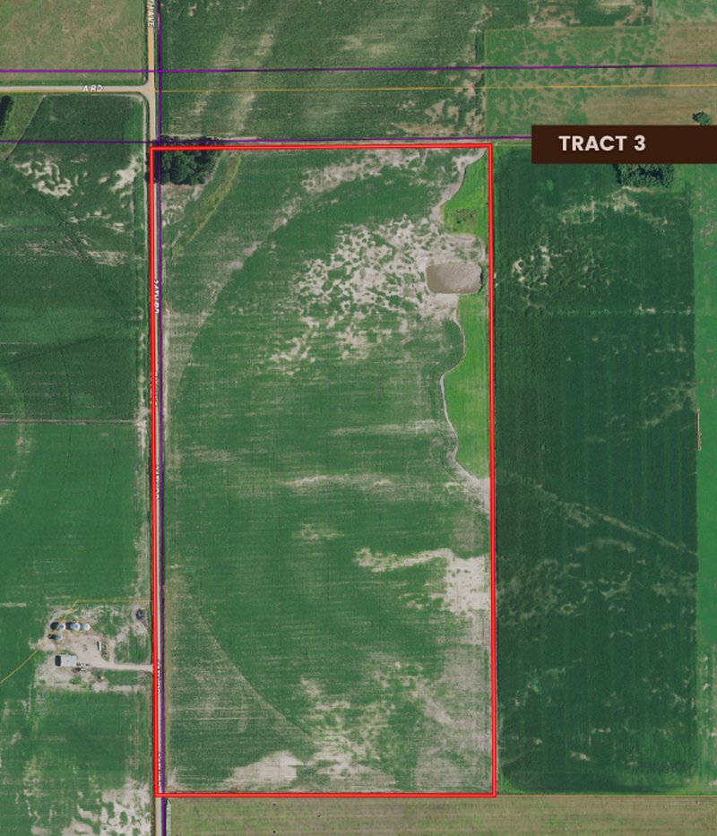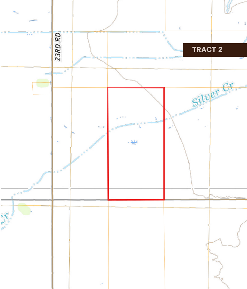 Up for auction are 3 nice laying flat farms located close to multiple elevators and an ethanol plant. Tract 1 and Tract 2 are just across the road from each other. Each is set up for a half swing pivot with the ability to water the corners. Tract 2 has Silver Creek running through the north part of the farm. Tract 3 is a nice flat pivot-irrigated 80 with the ability to irrigate the corners.