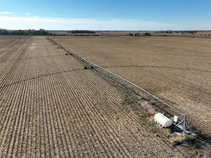 Zlomke Farm consists of pivot and gravity irrigated cropland with a small amount of dry cropland. Water is distributed by a 7 tower Zimmatic pivot with corner swing arm, as well as gated irrigation pipe. There is a bin site in the NW area of the farm consisting of two bins with a total capacity of approximately 36,000 bushels (18,000 bushels each).