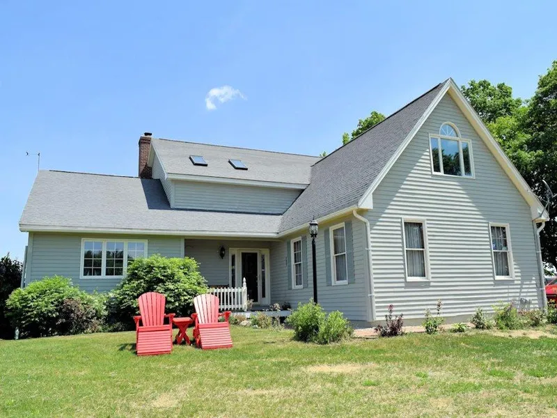 Wilshire farm, 6+ open, usable grassy acres with panoramic mountain views, 1997 3BR/2.5BA cape, updated kitchen with granite and tile, open concept kitchen/dining/living room, hardwood, first floor master suite with sliders to large deck, two upstairs bedrooms, full bath and bonus room. Partially finished basement. Beautiful setting with home set far back from the road up on a small knoll. Two electric fenced pastures with run-in. Two car attached garage, hot tub and garden shed. Build your own barn to your liking or keep the run-in.