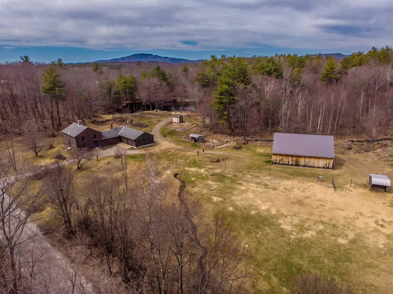 LEDGEWOOD FARM in central NH has something for everyone! The 1800s colonial is warm and inviting, offering spacious rooms with natural light, wide plank flooring, and vintage detail. On the first level a large kitchen with fireplace opens to a cozy dining room and family sized living room with its own fireplace. A first floor half bath/laundry room and two more rooms with potential for multiple uses completes the layout. Three bedrooms and a just redone full bath are up on the second floor. In the basement a newer furnace, pressure tank, and hot water tank have been added. A heat exchanger in the attic heats the second floor and cools the whole house in the summer. Outside 116 acres is yours to explore. A year round pond waits in the backyard, ready for early morning breakfasts or twilight glasses of wine. The 50x38 barn is ready for livestock, storage or a handy workshop. Over 2 acres a...