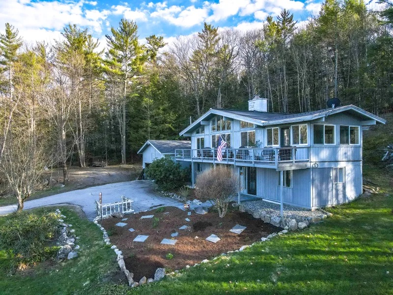 Stunning panorama views with jaw dropping sunrises, a stones throw to New London. Enjoy summer BBQs on the deck with Ragged Mountain in your backdrop. Enjoy an evening fire in the front yard with Mount Kearsarge in the backdrop. On a clear day, you can see all the way to Mount Washington! Nestled in the countryside is a cozy home away from home. A brand new kitchen with KraftMaid soft close cabinets, granite counter tops with a matte finish, and ceramic subway tile backsplash. A second deck off the kitchen makes for convenient grilling. The primary bedroom with ensuite bathroom has brand new hardwood flooring. Enjoy early coffee from the sunroom or deck to watch the sun rise. Open floor plan for entertaining guests. Wide and expansive windows make for a bright space.A central fireplace, sunroom, and primary bedroom with full bath. The lower level features two additional bedrooms and a common living room with fireplace. A separate two-car garage with additional storage above. Perfect outdoor garden space, new patio steps and enjoyable outdoor space. Just minutes to downtown New London with shopping, restaurants, and a small summer stock theater. Minutes away from Interstate 89, perfect for commuting to the Upper Valley or Concord. Enjoy beach days at Kezar Lake and hiking at Winslow State Park up Mount Kearsarge. Mount Sunapee, one of many Vail Epic Pass mountains is only 20 minutes away. Delayed Showings until Open House, Sat. May 8th 11am-2pm.