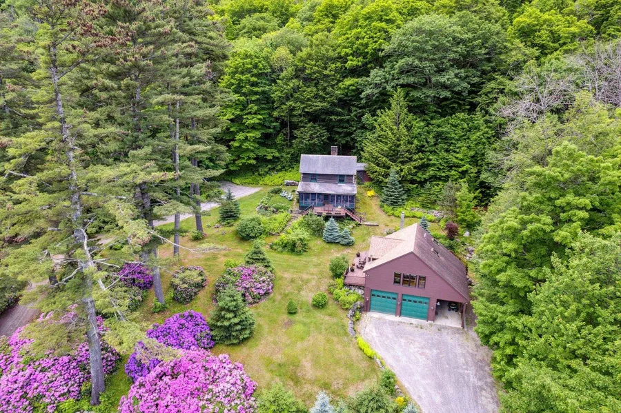 This is your chance to own an extraordinary retreat in Newbury, NH—a prime 2.67-acre estate with TWO distinct homes that offer unbeatable flexibility, investment potential, & enjoyment. At the heart of this property is a charming early 1900s log cabin, a cozy 3-season haven full of history & character. With 964 sq. ft. of warmth & charm, this cabin features 2 bedrooms, a kitchen, a ¾ bath, & living room anchored by a stunning fireplace. The screened porch offers breathtaking lake views, surrounded by lush, meticulously maintained perennial gardens—a true sanctuary lovingly cared for by the same family for 75 years. Below the cabin, is the modern 780 sq. ft. chalet-style home, perched above a 2-car garage with space for boat storage. This year-round escape boasts an open-concept design, a sleek kitchen, an office, a bedroom, & both a full & 1/2 bath. With wood & gas stoves, central A/C, & a generator, comfort is guaranteed in all seasons. Looking to expand? There’s potential to increase living space or turn this into a seasonal rental. Nestled against the 1,800-acre Mt. Sunapee State Park, this property offers unparalleled access to outdoor adventure—whether it's skiing at Mt. Sunapee, lounging at the State Beach, or exploring the scenic hiking trails. Just a short walk to Newbury Harbor, enjoy the beach, docks & restaurants. With Lake Sunapee shimmering in the morning light & the Newbury hills as your backdrop, this is more than a home—it’s a legacy. Agent Interest.