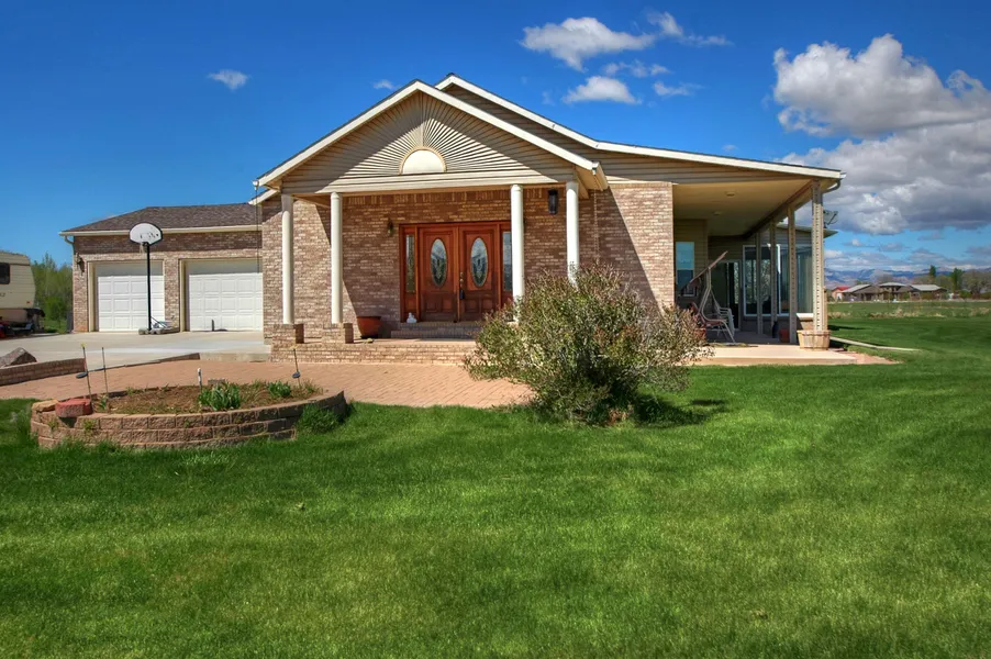 Private Country Setting, tucked away down a private drive. All Brick Custom Built Home with marble tile, crown molding in Living Room and Formal Dining. Light & Bright Arizona Room, Office, Spacious Master Suite. 13.3 Acres with pond, lush green hay fields, gated pipe irrigation. Convenient North Fruita location.