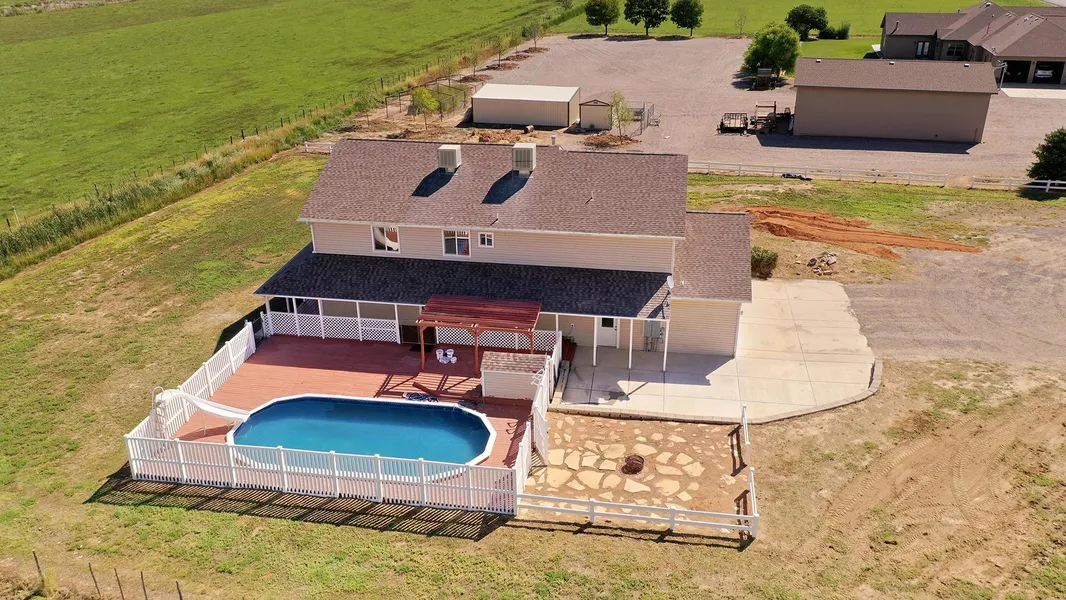 If you're looking for a little elbow room with no HOA then this is the home for you! Very welcoming 2 story home situated on 5 irrigated acres with gated pipe, with an attached oversized 3 car garage. Interior features 3 spacious bedrooms, 3 bathrooms plus a bonus room, new carpet and paint throughout. Exterior features a covered wrap around porch, open deck with a pool, barn and plenty of room for OHV's and horses. Come see what gives this home great value!