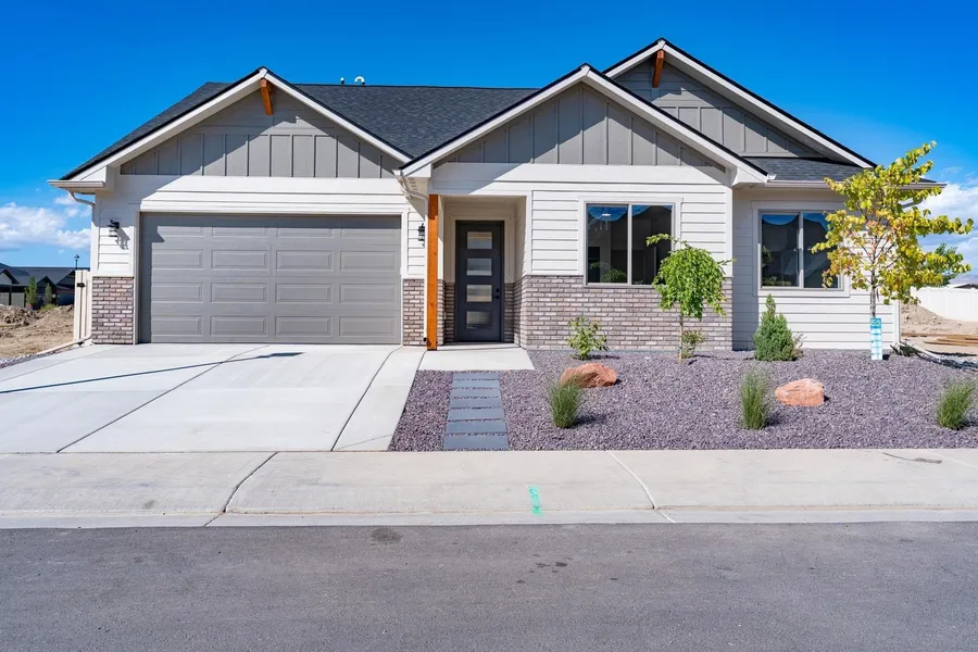 Welcome to this stunning new construction by BelleRose Builders, perfectly situated in the sought-after Apple Glen West community of northwest Grand Junction! Designed with both comfort and style in mind, this home features a desirable split-bedroom layout and an open-concept living space ideal for everyday living and effortless entertaining. Step through the grand foyer into a beautifully designed interior where three secondary bedrooms, two with their own walk-in closets, offer flexible space for guests, hobbies, or a home office. A full guest bathroom boasts custom tilework, upgraded cabinetry, and a tub/shower combo, with a nearby laundry room for convenience. The spacious living room features an elegant tray ceiling and flows seamlessly into the dining area and chef's kitchen, complete with a large center island, stainless steel appliances, tile backsplash, and rows of upgraded cabinetry. The private primary suite offers a luxurious retreat with dual vanities, a large walk-in shower, private water closet, and a generous walk-in closet with built-in shelving. Outside, enjoy the covered back patio with scenic Grand Valley views, while front landscaping, full fencing, and a sprinkler system add beauty and value. A 2-car garage rounds out this high-quality home; ready to welcome you in style!
