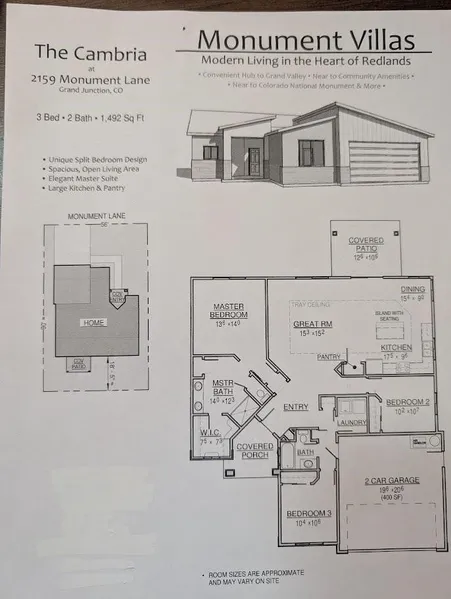 Beautiful Monument views in this new Subdivision in The Redlands. 3 Bedroom, 2 Bath Open Floor Plan designed for entertaining. Black and white color Scheme in Baths. Hickory Cabinets and Quartz Counters in Kitchen and Baths. Modern lighting throughout. Auto on Pantry Light. Rear covered Patio. Seller is offering fencing at $19 a lin. Ft.