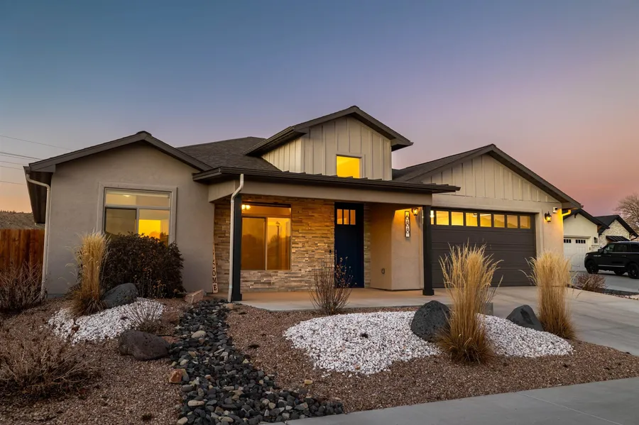 *Open House Sunday 2/22 11-1* Low-maintenance, lock-and-leave living meets thoughtful design in this well-maintained one-owner home located on a quiet cul-de-sac in the Grand View Hollow subdivision. The single-level layout offers an open-concept living, dining, and kitchen area filled with natural light and designed for ease and functionality. The kitchen features granite countertops, an oversized island, under-cabinet lighting, soft-close cabinetry, and stainless steel appliances. A split-bedroom floor plan provides privacy with three bedrooms and three full bathrooms. The primary suite includes patio access and a bathroom with a freestanding soaking tub and walk-in shower. Two additional bathrooms offer walk-in showers for added convenience. The laundry room is well appointed with butcher block countertops, ample storage, a utility sink, and direct access to both the garage and a full bathroom. The oversized tandem three-car garage with epoxy flooring provides space for vehicles, storage, or hobbies. The fully fenced and landscaped yard includes drip irrigation, fruit trees, and berry bushes, making outdoor care simple and efficient. Covered front and back patios offer comfortable spaces to enjoy the outdoors. Additional features include no-step entry, wide hallways and doorways, custom Hunter Douglas window treatments, new carpet and padding, and a smart thermostat. Conveniently located in North Grand Junction near shopping, medical facilities, the airport, downtown, and I-70 access.