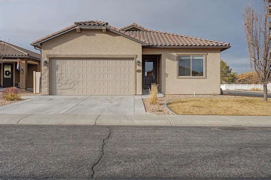 Beautiful Conquest built home in Mesa Estates. This 3-bedroom 2-bathroom home has open concept design with a split bedroom floorplan. Home features a generous amount of storage throughout including a large laundry room with plenty of cabinets and extra closet space. Large windows in the home provide plenty of natural light. Kitchen, dining area and living room lookout onto the large, covered patio. Spacious corner lot is fully fenced and landscaped to include brand new turf in the backyard. Views of the Colorado National Monument in the front and the Bookcliffs out the back. Fantastic location is conveniently located near groceries, stores, coffee shops, restaurants and the neighborhood park.
