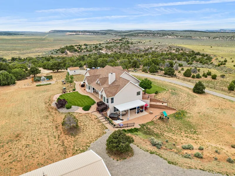 Experience the pinnacle of peace & privacy in this stunning home situated on a 60-acre property in Glade Park, Colorado. Surrounded by over 1000 acres of BLM land, this property offers uninterrupted, breathtaking views of the Colorado National Monument's landscape. As you enter the front door, you are greeted by an open & modern entryway, accented by elegant column pillars & arched doorways. The adjacent living space is bathed in natural light, & offers panoramic views through large windows. The spacious dining area, with its updated fixtures, is the perfect spot for entertaining guests. The kitchen is a chef's dream, featuring beautiful wooden cabinetry, granite countertops, stainless steel appliances, & a sit-up counter for casual dining. An additional eating space, with bay windows, provides a serene & unmatched dining experience. The large primary living area has vaulted ceilings, a ...