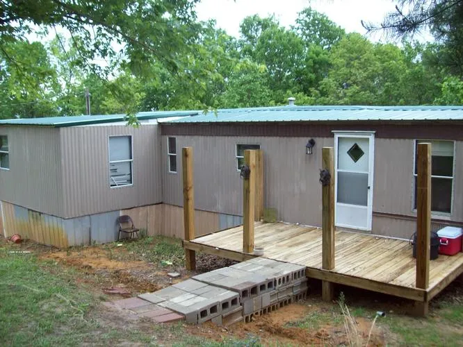 We've got a 14x70 mobile home with a add on room set up ready to move in. There is also another mobile home thats been set up and tied down that is adjacent to the other home. This would be a good place to move into or would make ideal rental property. There are sheds, a barn, and a dog pen on the property. Mature shade trees in front of home. Bring all your chickens, ducks, guineas, goats and whatever else you may have and let them run over the three acres that is there.