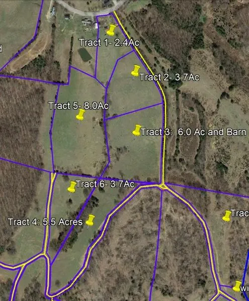 6.1 Acres with a large 2000 sq. ft. newer barn with metal roof and great views. Also near the highway entrance, this would be a perfect home site for the animal lover. Mostly rolling pasture with a ditch line and trees at the West border for shade. More adjoining land available at KY Whitetail Land Co as low as 5% down. This is tract 3.