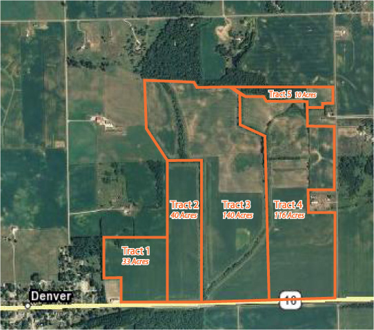 Tracts 1-5: Located approximately 1 mile northeast of Denver, IN, on the north side of SR 16.