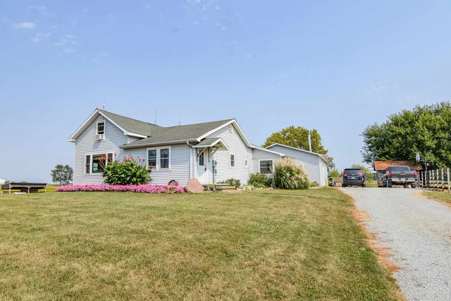 This 4 bedroom home sits on 1.48 acres with beautiful rolling hills. Many improvements in the past few years including two new furnaces, all new windows, new flooring, solid 6 panel wood doors, gorgeous custom made rustic hickory cabinets in the kitchen and bath, new water heater and softener in 2016, and all new carpeting upstairs. Relax in the backyard at the landscaped fire pit while the kids or pets play in the yard. There is plenty of room for farm animals as well in the fenced barn yard and out building that is currently being used for chickens with water and electricity. There is also a large barn on this property. This road is very lightly traveled. If you are looking for country living at it's best, this home is for you!