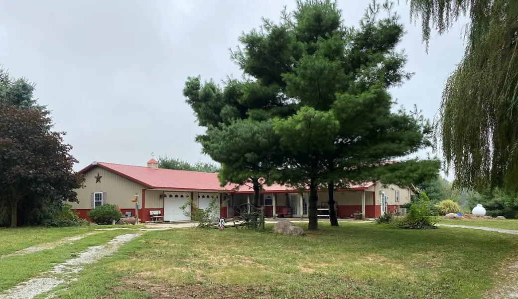 Pole Barn House with Garage on 2.2 Acres! This home features 3 Bedrooms, 1.5 Bath with 2 Car Attached Garage! Secluded Setting - Enjoy the peaceful country setting on the Large Covered Front Porch! Come See For Yourself: OPEN HOUSE: September 28, 5:30-6pm!
