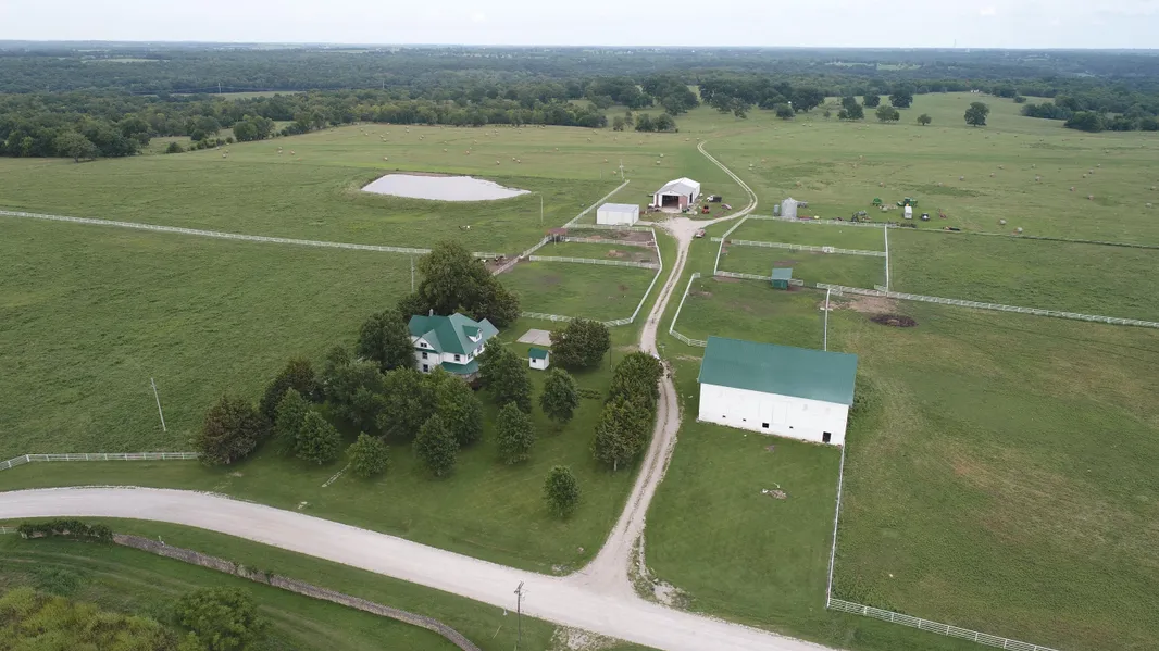 500 acre ranch in southern Miami County with 5 bedroom, 3 bath 2 story home & 4 bedroom, 2 bath ranch. Lake, 4 ponds, barn, machine shed, airplane hangar, & lighted landing strip. 100% owned oil field. Miles of white pipe fencing. Local film headquarters of Universal Studio's blockbuster movie "Ride with the Devil". MLS #2221292