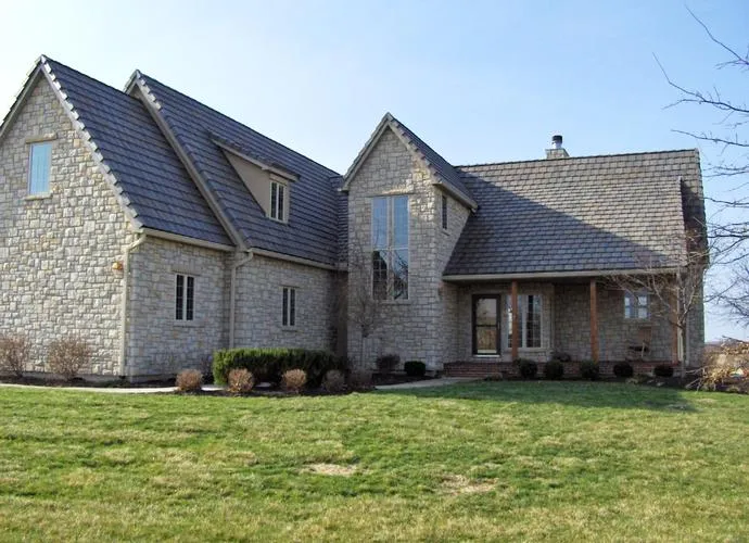 PRICE REDUCED!! This one has it all! Custom built 3 bed 3 full bath 1.5 Story w/80 acres on blacktop. Model stone, stucco & concrete tile roof. Large Master w/fireplace. Kitchen w/soap stone island & see thru stone fireplace w/limestone Hearth. All Jenn Air appliances. Vaulted Ceiling, tile/wood floors. Full walkout basement w/9' ceilings & stubbed for full bath. 40X60 Morton --insulated, concrete floor w/overhead door, water & electricity. 4-12x12 Stalls w/turnouts, tack room & 80X150 riding arena. Round pen. Shared Lake. A must see!!