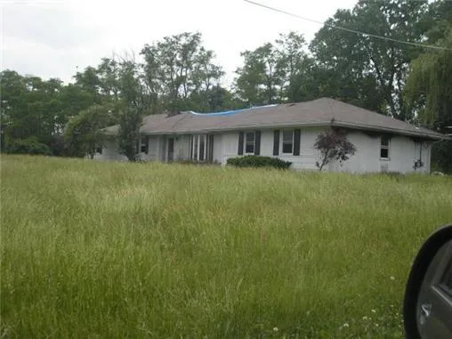 Great opportunity to purchase this home on 9.8 acres on BLACKTOP! Home had a fire on the back deck so damaged home needs extensive repair. Being sold 'as is', home has lots opportunity to finish with a full finished lower level. Or build your dream home with trees along south perimeter & several beautiful mature trees. Undamaged outbldg detached garage. Home has attached garage. SQ FT & TAXES APPROX. SELLER MAKING NO REPAIRS, SELLING 'AS IS'.