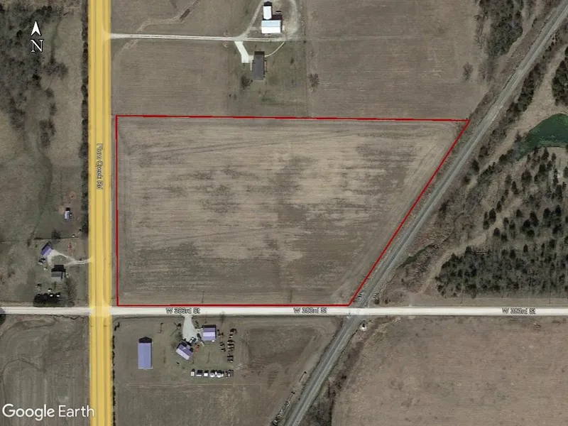12.6 Acres on K-7 Hwy, only 2 miles from 169 Hwy. Good building lot with easy access on two sides or an investment property that is currently in crop production. The property has good class 2 and 3 soil types, continue with the crop production for income until you are ready to build. Cash rent income is $1,200. Water meter availability to be verified. For an outlined aerial and location map, email the listing agent. Taxes are $188.