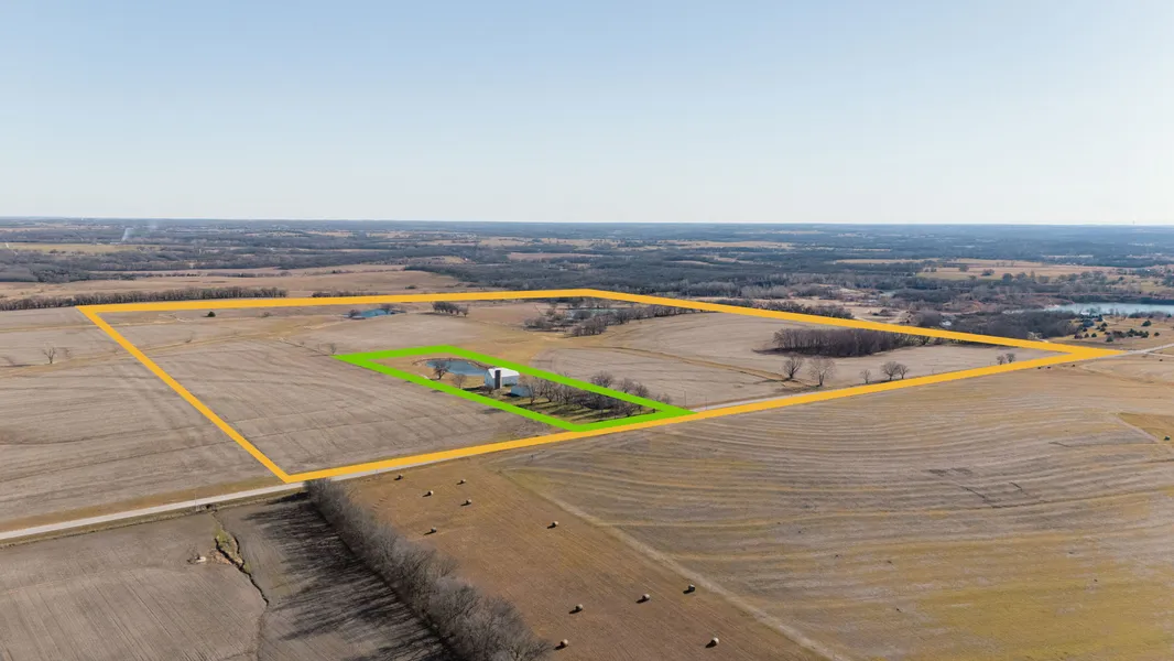 Experience tranquility at this unique farm located in Miami County, Kansas. It boasts a beautiful farmhouse, outbuildings, ponds, and more. With agricultural income, recreational value, and a great homestead just minutes from Paola, Spring Hill, and Louisburg, Kansas, this property is perfect for anyone looking to settle down or add to their holdings in the area. This unique farmhouse holds the potential to be a charming bed and breakfast or event venue. The house is clean and in good condition. The main floor holds a master bedroom with a full bathroom, and 2 staircases at the front and back of the house. They lead to a second floor with three bedrooms and a full bathroom, which used to be leased as a separate apartment. The woodwork on the stairs and the rest of the house is original and in extremely good condition.