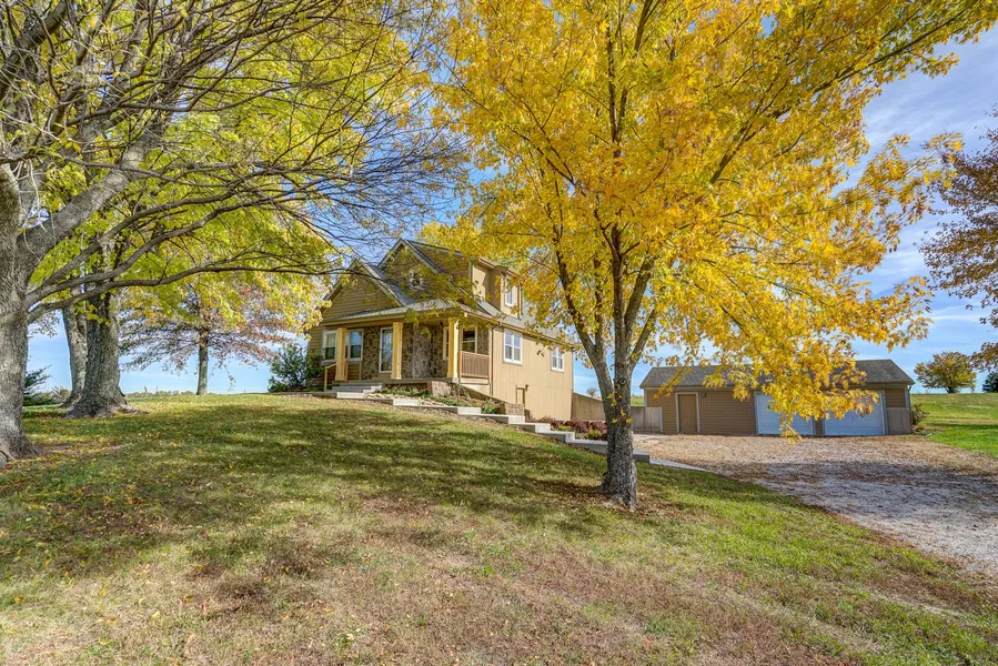 HARD-TO-FIND five acres with a completely remodeled 1.5 story home in Bucyrus! This close-in property features a stocked pond, oversized detached garage, beautiful trees, and perfect pasture. Hardwood floors throughout the house, fresh paint, new windows, doors, fixtures, updated kitchen and baths, plantation shutters, and much more! All bedrooms feature hardwood floors and neutral colors. Walk-out basement is ready to finish for additional square footage. Minutes to Overland Park and Louisburg.