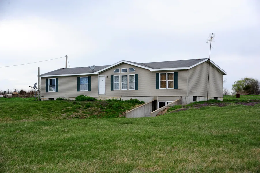 3 bedroom, 2 bath manufactured home on 65 acres m/l. Seller is VERY MOTIVATED, bring offers! Home is "as is" and needs TLC. Large living room, kitchen/dining combo, and full unfinished walkout basement. On blacktop with large open lean-to. Panhandle Eastern has 3 gas lines on property. In the supplements, you will find an appraisal showing that the land is worth most of the value. All new doors and flooring stay with property. MLS #1983886
