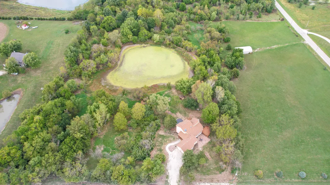 Spectacular home on 6 acres with huge garden pond. This home has a large Master on the main, with a study that could be a 4th bedroom if needed! Great room has tall windows looking out over mature trees and 2 acre pond, also has tile fireplace hearth, built in bookcases with a rolling ladder for easy access! Wood floors on most of main level, slate floor in kitchen area. Wonderful views of nature from upper level bedrooms. Enjoy wood deck, one on back of home, overlooking 2nd garden pond and a deck on east side of home also. Full unfinished walk out basement ready for your custom finish! This beautiful property reminds one of artist Cezanne painting by the water! Taxes & sq. ft. approximate. Enjoy wildlife too!