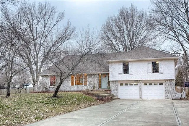 Beautiful one-acre lot in the Blue Valley School district, featuring freshly painted interior/exterior and several improvements. The home boasts a fully updated kitchen with white enamel cabinets, new stainless steel appliances, and stylish quartz counters. Refinished hardwood flooring graces the main level, complemented by new carpet upstairs. Recently renovated bathrooms showcase elegant tile and coordinating granite surfaces, including a primary bath with a spacious walk-in shower and a double sink vanity. Laundry conveniently located on the bedroom level. Flexible living options are offered through the eat-in kitchen, separate dining area, or bonus space/office. The property includes a deep two-car garage and an expansive deck off the kitchen, providing views of a peaceful koi pond surrounded by stone landscaping. Close to Stilwell Elementary, the home's Bucyrus address places it ne...