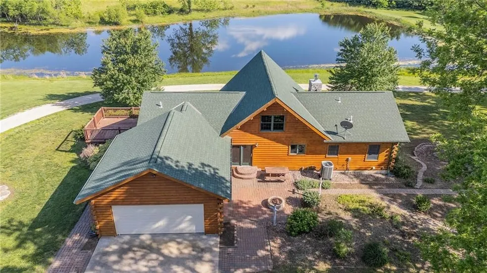 Once in a lifetime property! Long winding drive leads to your private oasis nestled on 76.26 +/- acres. Beautiful log house tucked away in a secluded location overlooking your own lake. Large windows throughout the home allow natural light to flood in. A vaulted great room with exposed beams, custom woodwork and a gorgeous stone fireplace add to the rustic touch, open to kitchen and dining area. Stairs lead up to an open loft looking over the great room, offering numerous options for use such as an office, 4th non-conforming bedroom, etc. Master bedroom has walk-out door to your own private deck. 2nd main level bedroom does as well. Finished walkout lower level features family room, rec room, 3rd bedroom with walk-in closet and full bathroom, plus plenty of storage. The land holds potential income through hay and row cropping. Native flowers and mature large trees/woods and creek. Outdoor enthusiasts will appreciate the properties hunting opportunities. Abundant deer and turkey, a hunter's paradise! 3 car garage plus 30x40 outbuilding with concrete floor. Serenity and outdoor entertaining like no other! Don't miss out on this opportunity, the possibilities are endless!