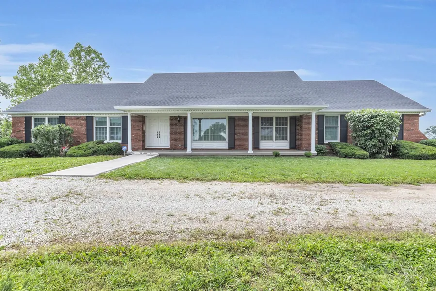 Imagine driving down a long, private driveway, anticipation building as you approach this impressive all-brick home nestled on over 25 Acres North of Paola. Standing proudly alone, the residence overlooks a picturesque pond, offering serene views Newer Anderson windows & doors. Step onto the welcoming porch and into a spacious entry that seamlessly transitions into the great room, where a wood burning fireplace creates a cozy ambiance. The heart of this home is the eat-in kitchen, a perfect gathering spot for the family. For more formal occasions, a dedicated dining room awaits. Retreat to the wonderful master bedroom suite, complete with a modern stand-alone shower. Two additional generously sized bedrooms and a full bathroom are also located on the main level. An exciting bonus is the accessible attic, presenting fantastic potential for additional finished living space. The walk-out lo...