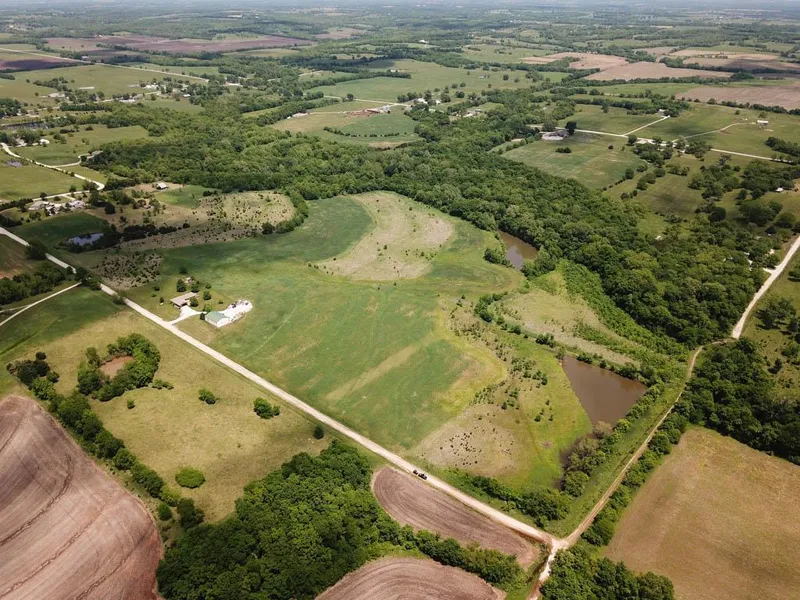 In southern Miami County, Kansas sits a beautiful 82 acres at the end of a very quiet and peaceful dead end road. This farm has a perfect balance of big hardwood timber, open field, and brushy areas for ideal deer habitat. The terrain offers a very nice roll to the farm, with higher elevation points that would serve for excellent build sites as it slowly rolls away down towards the creek bottom. The Elm Branch Creek is a very nice rock bottom creek that meanders through the entire length of the property from north to south. The big mature timber that borders each side of the creek is very diverse with Oak, Walnut, and huge Pecans and Sycamores. There is plenty of timber and cover to hold a large deer and turkey population. The abundance of wildlife that use this farm is very obvious with deer sign scattered throughout. There are also two good sized ponds to round out the recreational opp...