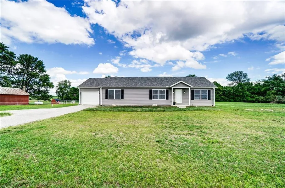 2018 Custom Unibilt Modular 3 bedroom 2 bath home situated on 5.064 acres. 28x36 barn is Perfect for your horses/animals,4-H projects or use as more garage space for your toys. Huge open kitchen and Living room area for your entertaining pleasure. Master bedroom with full bath. 2 other bedrooms on other side of home share a full bath. Laundry is right off kitchen area. Located in Miami East LSD. Land goes back to the woods. Dont miss out! Wont last long! Propane tank is rented from Earhart. Kennel and poly wire fence does not stay.