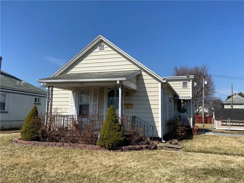 2 bed ranch with a nice covered patio in the front and the back. Laundry added off the kitchen for first floor convenience. Good sized fenced yard with detached 1 car garage and a shed. Extra gravel area for more parking! Water heater (2015). Being sold AS-IS.
