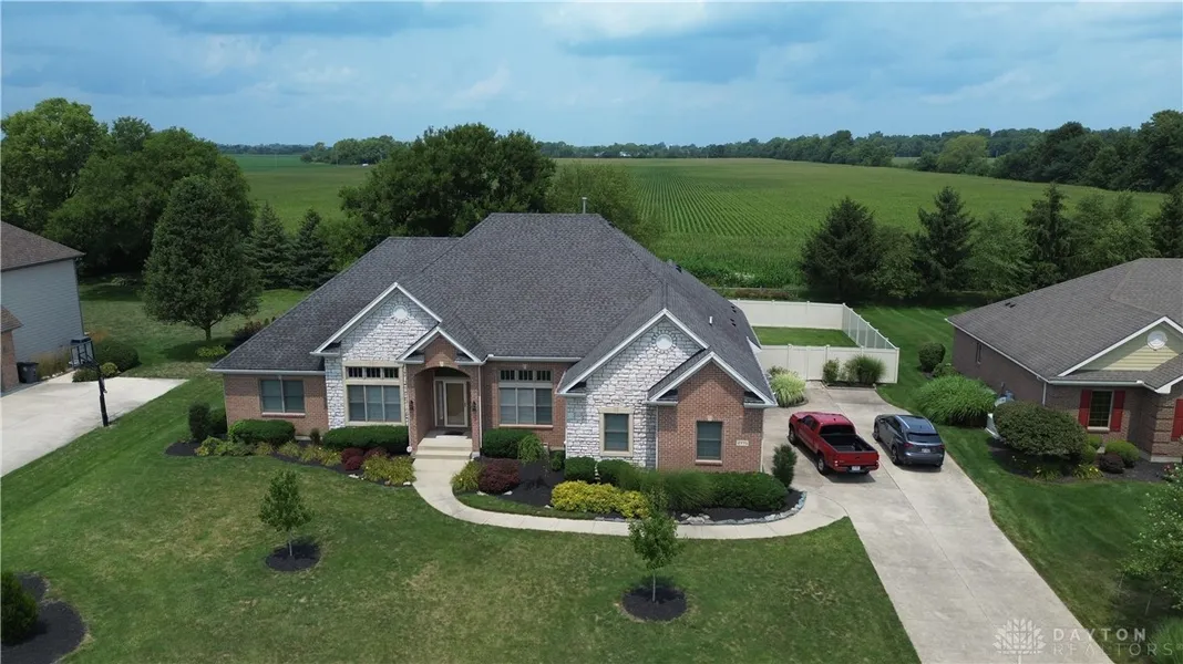 VA loan is assumable from 2020. Remodeled and move in ready 3 potentially 4 bedroom custom built home with a full basement that is partially finished on one of the largest lots in the Stonebridge subdivision. Welcome to your dream home! Inside you will find the finest of finishes including vaulted ceilings with an abundance of natural light from every single room. This cook's kitchen offers a peninsula with additional seating as well as an area for a dining room. There's also a formal dining room with tray ceilings. Additionally there's an office area that can also be used as a potential fourth bedroom on the main level off of the entry room. The kitchen comes equipped with all of the stainless steel appliances that are currently at the property as well as an island with granite and quartz countertops. The en-suite offers tray ceilings as well as a large bathroom with a double sink a large shower and a soaking tub as well as a walk in closet with lots of shelving. This home offers a split design with two other bedrooms as well as a full bathroom on the opposite side of the home. The fireplace in the living room is functional. The dining room walks out onto your private patio that's overlooking the private backyard that has a six foot privacy fence. There's also a water feature in the backyard in case you want to have a small pond. The garage is oversized and can easily park 3 cars. Basement offers 2600+ sq ft of which 1600+ sq ft is finished and it has wet bar as well as a peninsula with seating. Extra room in the basement can easily be finished off. 1/2 bath in the basement is plumber for a full bath. The basement has an abundance of natural light. Perfect location backing up to nothing but cornfields. Situated on the edge of town. Total of 2 full baths and 2 1/2 baths. 1/2 bath in the basement along with the wet bar. Upstairs offers 2 full baths and 1 1/2 bath off of the laundry area. Lots of ceramic flooring for each maintenance. Irrigation system included.