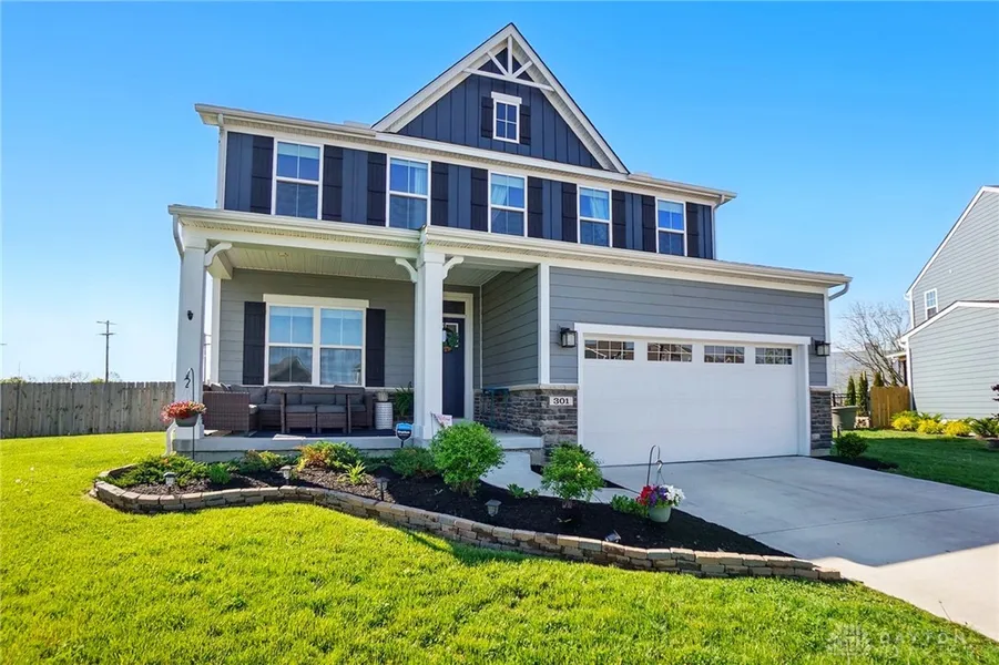 Welcome to this beautiful 2-story home located in the desirable Cedar Grove community with over 3200 sqft of total finished living space! Great location, curb appeal and move-in ready. Arrive and you will notice the inviting covered front porch. Step inside and you will fall in love with the open concept floorplan which is perfect for entertaining. Through your french doors is the perfect space for your home office. Your living room features a gorgeous stone gas fireplace and opens to both your kitchen and dining room. The kitchen is a chef’s dream with a massive island, granite counters, SS appliances (gas oven, wall and microwave oven) loads of cabinets and tons of natural lighting. A half bath completes your main level for convenience. Upstairs discover your large primary bedroom with a full spa like bathroom en-suite to include walk-in shower, tiled floor, dual vanity, and sunken tub. If you need closet space, you will not be disappointed with this extremely large walk-in closet. Plenty of space with three additional good-sized bedrooms and a full guest bathroom with tub surround. Your laundry room is located in the center of the upper level for extra convenience. Enjoy movie nights and entertainment in your basement with your built-in screen projection setup. A full bathroom completes your finished space in the basement. Storage will not be a problem with two large unfinished areas in the basement and a two-car attached garage. Outside relax and unwind under your large covered deck with fenced yard and beautiful landscaping.
