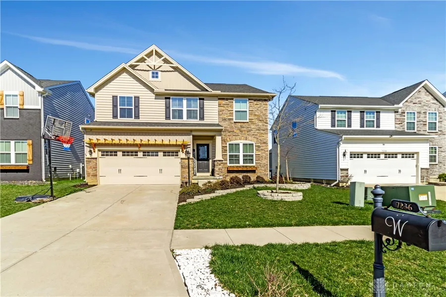 Welcome to this stunning 4 bed/4 bath home in a peaceful neighborhood just outside Dayton-close to Huber Heights, Wright-Patt AFB, & charming towns like Troy & Tipp City! Light & airy with luxury vinyl flooring throughout the 1st floor, this home features an open kitchen with SS appliances, island seating, & a cozy morning room. The family room offers a custom electric fireplace, while the formal dining room is perfect for special occasions. A private study with French doors adds flexibility. Upstairs: 4 large bedrooms, laundry room, & spacious primary ensuite. The finished lower level includes a theater room, storage, & a flex space that could be a 5th bedroom. Outside: enjoy a new deck, pergola, fenced yard, & fire-pit. Sidewalks throughout & top-rated schools nearby-don't miss this one! Co Agent is related to seller.