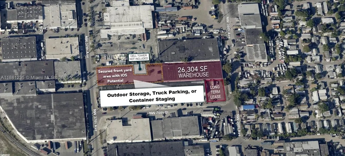 Lee & Associates presents an Industrial warehouse with IOS in the thriving Hialeah submarket—a rare opportunity to capitalize on Miami-Dade’s highly constrained IOS market. Situated on a 1.72 acre lot (74,734 SF across two adjacent folios) with an existing ±26,304 SF warehouse, the property features a secured ±34,659 SF front yard area that can be enhanced for outdoor storage, truck parking, or container staging. With industrial zoning that supports storage and logistics uses, the site is well-positioned to meet the strong tenant demand for IOS in this submarket. Investors can unlock additional value by formalizing the outdoor yard with fencing, surfacing, and screening, creating a dual-income play that combines traditional warehouse tenancy with premium IOS land rents.