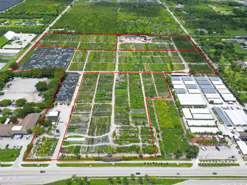 27+ ACRES ON KROME AVE..4 PARCELS 500+ FT FRONTAGE ON KROME, ANOTHER 500+ FT ON BUSY SW 192 STREET WHICH WRAPS AROUND THE BU1A SHOPPING CENTER.(RECENTLY FILED TO INCREASE THE ZONING FOR ENTIRE 5 ACRES TO BU1A CURRENTLY BU1A AND AGRI) AND THEN ACROSS TO SW 186 STREET THATS BOARDERING TOM THUMB ANOTHER BU1A TO NORTH. LOCATION. EXPOSURE & CHANGE.... THE LAND LAYOUT IS A BIG "T". IT IS A SUCCESSFUL TURNKEY WHOLESALE NURSERY BUSINESS W/ 4 M IN PLANT INVENTORY. PRODUCT AND OUTFIT PRISTINE. THE EQUIP IS ALSO INCLUDED. EMPLOYEES WOULD LOVE TO CONTINUE. SO MANY OPPORTUNITIES AVAILABLE DIVORCE FORCES THIS SALE. KROME CORRIDOR PASSED 2024. ANOTHER 15 ACRE TREE FARM CREW QRTS ETC OWNER BY SAME AVAIL IF DESIRED