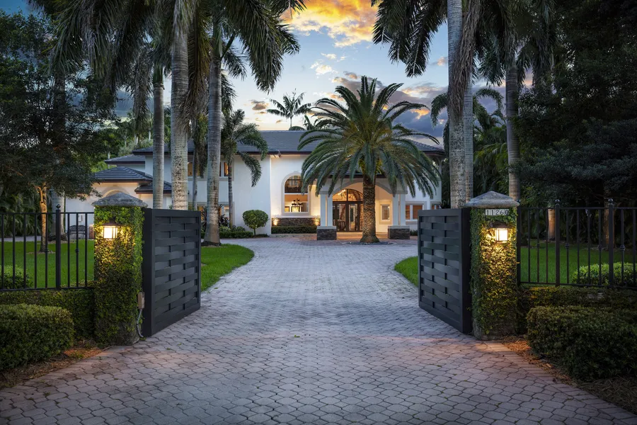 Spectacular two-story transitional estate located near Kendall. This gorgeous estate is surrounded by lush landscaping on a gated acre lot, spanning 6 bedrooms / 5 bathrooms, and guest house with 2 bedroom/1 bath an living/kitchen. Main house greets you with an elegant grand foyer and spiral staircase, formal living room and dining room with views of the stunning pool area. Discover a modern chefs kitchen with top-of-the-line appliances leading to breakfast area, double family room and stunning wet bar. Built with entertainment in mind, find a spacious den upstairs with covered balcony and ample lounge area. Master suite offers spa like bath with separate jacuzzi tub and shower. Outdoor living comes to life with covered terrace, summer kitchen, cozy firepit, resort-style pool and ample green grounds. Additional Features: impact windows/doors, 3 car garage and laundry room.