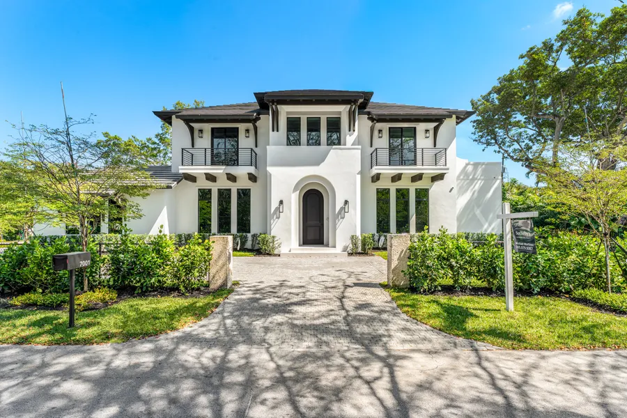 Seller financing available. This newly completed two-story modern estate, designed by Rebecca Pacheco of Ramon Pacheco Architecture, epitomizes contemporary luxury with thoughtful design & premium finishes. Inside, discover refined living spaces & a gourmet kitchen with custom porcelain countertops. The first floor and covered terrace are elegantly finished with Italian-made 48x48 porcelain tiles. A cantilevered oak staircase or elevator leads to the second floor, unveiling oak wood floors, a cozy sitting area & beautifully designed bedrooms, including a resort-style primary suite. This smart home features a summer kitchen, home office, wine gallery, LED lighting, impact-resistant windows. The exterior offers a resort-style pool, gated perimeter & a rare three-car garage near top schools.