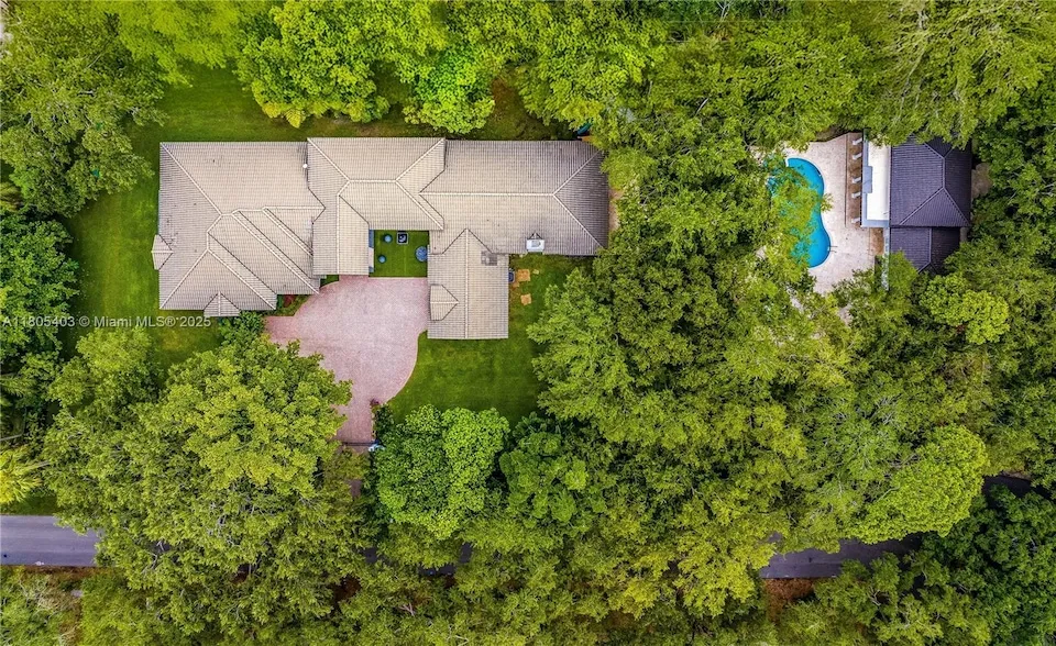 Stunning gated 1-story 8,126 total SF residence on a quiet cul-de-sac in prime North Pinecrest, steps from Gulliver & Beth Am. Set on a lush 1.1 acre with a 2-story, 1,300 SF guesthouse, treehouse, & ample parking. The 6-bed, 5.5-bath main home offers an office, new impact windows/doors, & Firenze Carrara polished marble tile throughout. Gourmet kitchen boasts a leather-textured marble island, Veneta Cucine cabinetry, & Miele appliances. Guest bath features full-height, single-slab Italian tile. Primary suite includes dual walk-in closets & a spa-style bath with Kohler DTV+ faucet less system for steam, audio, chromotherapy, & lighting. Whole-house Brilliant system manages lighting, Zoom intercom, & Sonos audio indoors/out. Outdoor oasis includes a new summer kitchen & resort-style pool.